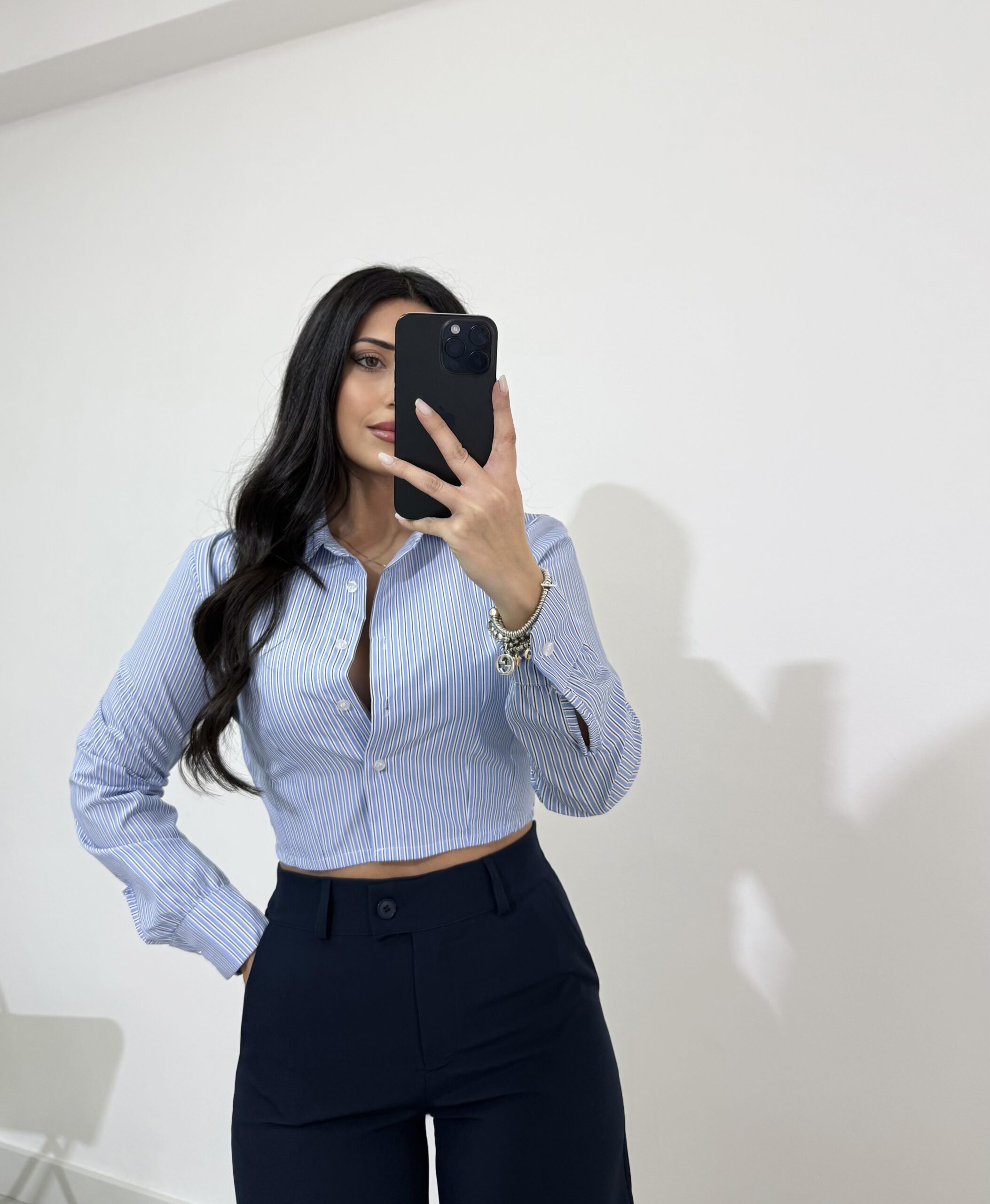 CAMICIA CROP A RIGHE CELESTE quantità