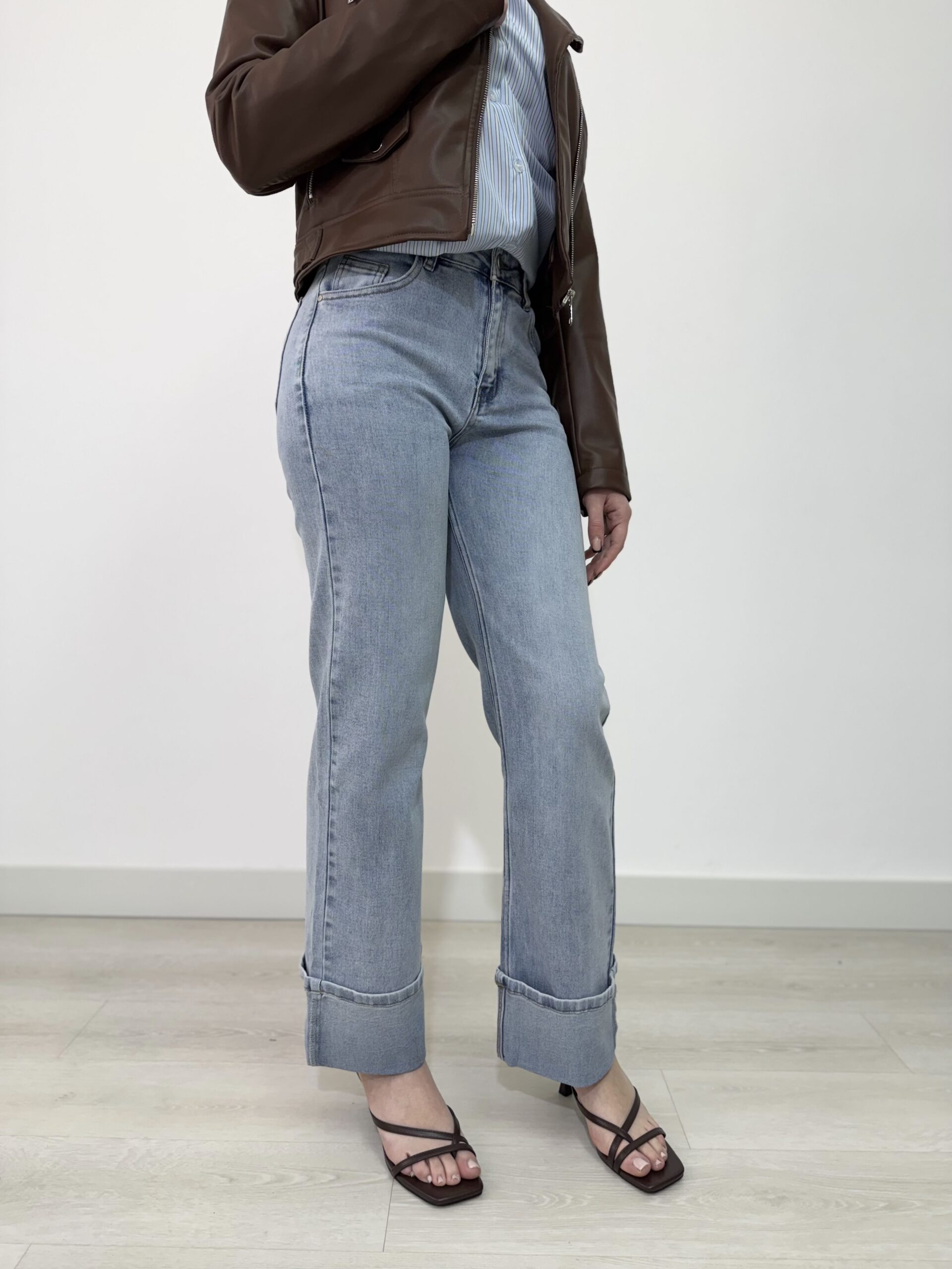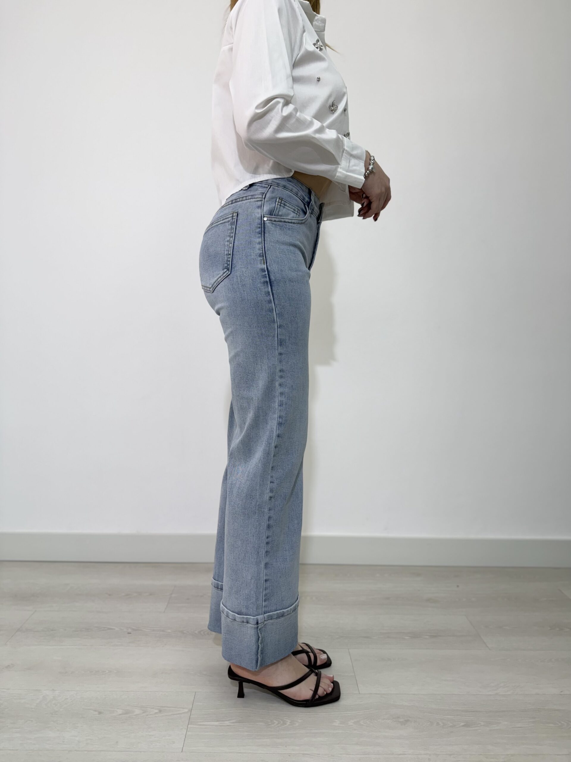 JEANS WIDE LEG CON RISVOLTO